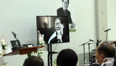 (서울=뉴스1) 김명섭 기자 = 15일 오후 서울 구로구 성공회대에서 열린 신영복 선생 10주기 추모식에서 참석자들이 영상을- 15시간전