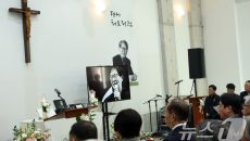 (서울=뉴스1) 김명섭 기자 = 15일 오후 서울 구로구 성공회대에서 열린 신영복 선생 10주기 추모식에서 참석자들이 영상을- 15시간전