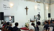 (서울=뉴스1) 김명섭 기자 = 15일 오후 서울 구로구 성공회대에서 열린 신영복 선생 10주기 추모식에서 참석자들이 영상을- 15시간전