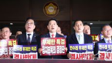(서울=뉴스1) 신웅수 기자 = 장동혁 대표를 비롯한 국민의힘 의원들이 15일 서울 여의도 국회 로텐더홀에서 더불어민주당의 특- 23시간전