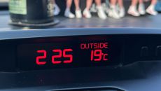 (대구=뉴스1) 공정식 기자 = 기온이 크게 오른 15일 오후 대구 남구 한 야외 주차장에 주차된 차량 실내 온도계가 외부온도- 23시간전