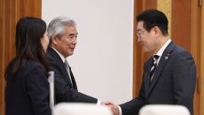 나카소네 히로후미 참의원과 인사하는 이재명 대통령