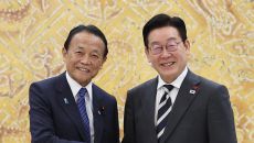기념촬영하는 이재명 대통령과 아소 다로 전 日 총리
