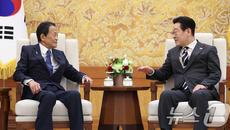 (서울=뉴스1) 허경 기자 = 아소 다로 전 일본 총리가 16일 청와대를 방문해 이재명 대통령과 면담하고 있다. 2026.1.- 11시간전