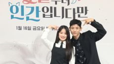 (서울=뉴스1) 권현진 기자 = 배우 김혜윤과 로몬(오른쪽)이 16일 서울 양천고 목동SBS에서 열린 새 금토드라마 '오늘부터- 19시간전