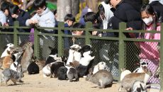 '포근한 날씨' 토끼 먹이 주기
