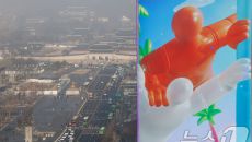 (서울=뉴스1) 안은나 기자 = 올해 들어 처음으로 서울에 미세먼지 주의보가 발령된 16일 서울 종로구 광화문광장, 경복궁,- 2026-01-16 13:26