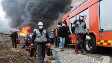(서울=뉴스1) 김진환 기자 = 16일 오전 서울 강남구 개포동 구룡마을에서 발생한 화재로 불길이 치솟고 있다. 2026.1.- 2026-01-16 10:05