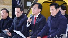 (서울=뉴스1) 신웅수 기자 = 송언석 국민의힘 원내대표가 19일 서울 여의도 국회 로텐더홀에서 열린 최고위원회의에서 발언하고- 15시간전