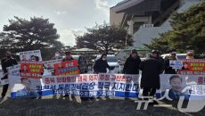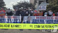 폴리스라인 설치된 김형석 관장 지지자 기자회견