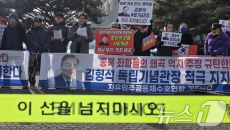 (천안=뉴스1) 이시우 = 독립기념관 이사회가 열리는 충남 천안 독립기념관 밝은누리관 앞에서 김형석 관장을 지지하는 자유민주공- 2026-01-19 14:19