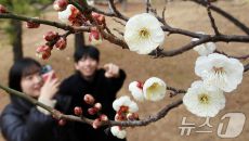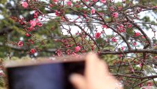 대한 앞두고 핀 홍매화 '찰칵'