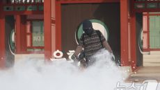 (수원=뉴스1) 김영운 기자 = 간밤에 눈이 내린 19일 경기 수원시 팔달구 화성행궁에서 관계자가 제설작업을 하고 있다. 20- 2026-01-19 10:36