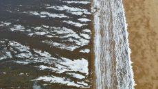 대한 추위에 얼어붙은 해변