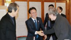 배우 문성근과 인사하는 김민석 총리