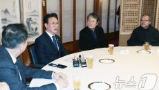 (서울=뉴스1) 청사사진기자단 = 김민석 국무총리가 20일 서울 종로구 삼청동 총리공관에서 열린 연극인 간담회에서 배우 문성근- 1시간전