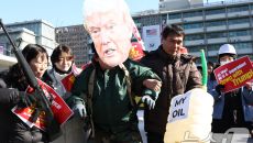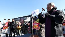 트럼프 규탄 구호 외치는 시민단체