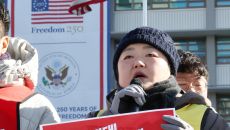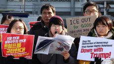 미 대사관 앞에서 열린 트럼프 1년 규탄 국제민중재판