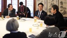 (서울=뉴스1) 청사사진기자단 = 김민석 국무총리가 20일 서울 종로구 삼청동 총리공관에서 연극인들과 간담회를 하고 있다. 2- 1시간전