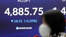 (서울=뉴스1) 김명섭 기자 = 20일 오후 서울 중구 우리은행 본점 딜링룸 전광판에 증시 종가가 표시되고 있다. 이날 코스피- 4시간전