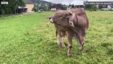 (서울=뉴스1) 김학진 기자 = 오스트리아의 한 산간 마을에서 막대기와 빗자루 등 도구를 사용해 몸을 긁는 젖소의 모습이 포착- 9시간전