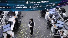 (서울=뉴스1) 오대일 기자 = 한국 증시가 사상 처음으로 '코스피 5000' 쾌거를 달성한 22일 서울 중구 우리은행 본점- 8분전