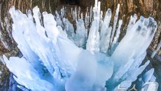 땅에서 솟아나는 '역고드름'이 만들어지는 순간