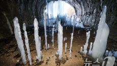 땅에서 솟아오른 역고드름···'한파가 만든 장관'
