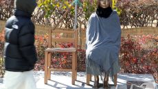 망토와 목도리 두른 '평화의 소녀상'
