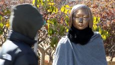 (대구=뉴스1) 공정식 기자 = 올겨울 최강 한파가 몰아친 22일 대구 중구 2.28기념중앙공원 앞 평화의 소녀상에 누군가 망- 9시간전
