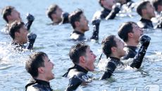 (창원=뉴스1) 윤일지 기자 = 전국적으로 맹추위가 기승을 부린 22일 경남 창원 진해 군항에서 해군 심해잠수사(SSU)들이- 20시간전
