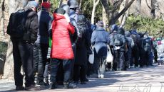 (대구=뉴스1) 공정식 기자 = 매서운 한파가 몰아친 22일 대구 달서구 두류공원 '사랑해밥차' 무료급식소를 찾은 사람들이 줄- 20시간전