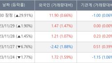 [서울=뉴스핌] 로보뉴스 = 30일 14시 35분 현재 태양금속(004100)은 외국인이 11.90만 주 대량으로 순매수(잠정- 2023-11-30 14:35