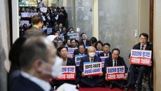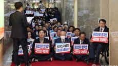 국회의장실 앞에서 구호 외치는 국민의힘 의원들