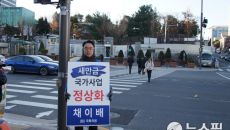 [군산=뉴스핌] 고종승 기자 = 내년 총선에서 군산 선거구 출마 예정인 채이배 전 국회의원이 30일 용산 대통령실 앞에서 새만- 2023-11-30 11:03