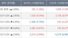 [서울=뉴스핌] 로보뉴스 = 30일 10시 15분 현재 씨앤씨인터내셔널(352480)은 외국인과 기관이 각각 0.02 만 주,- 2023-11-30 10:21