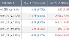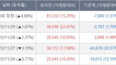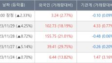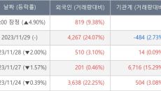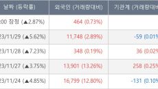 [서울=뉴스핌] 로보뉴스 = 30일 10시 15분 현재 세방전지(004490)는 전일 대비 10.88% (현재가 59,100원- 2023-11-30 10:19