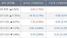 [서울=뉴스핌] 로보뉴스 = 30일 10시 15분 현재 대한해운(005880)은 전일 대비 7.22% (현재가 1,930원)- 2023-11-30 10:19