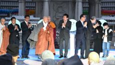 [서울=뉴스핌] 양윤모 기자 = 오세훈 서울시장이 1일 저녁 봉은사에서 열린 '2025 국제 선명상 대회' 개막식에서 참석자들- 2025-04-01 20:51