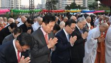 [서울=뉴스핌] 양윤모 기자 = 오세훈 서울시장이 1일 저녁 봉은사에서 열린 '2025 국제 선명상 대회' 개막식에서 합장하고- 2025-04-01 20:52