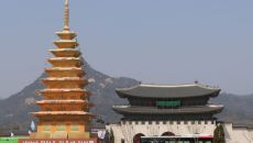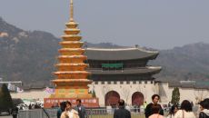부처님 오신날 앞두고 광화문에 설치된 '미륵사지 9층 석탑
