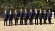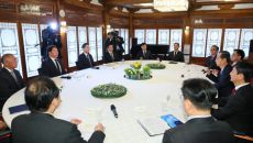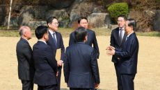 [서울=뉴스핌]한덕수 대통령 권한대행 국무총리가 1일 서울 종로구 삼청동 총리공관에서 경제안보전략TF 회의에 앞서 참석자들과- 2025-04-01 13:15