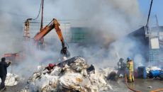 용인시 한 자원순환시설서 파지 100t 화재...8명 대피