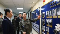 [서울=뉴스핌]한덕수 대통령 권한대행 국무총리가 1일 경기도 파주 공동경비구역(JSA) 대대에서 김태우 대대장으로부터 추모의- 2025-04-01 19:20