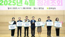 [무안=뉴스핌] 조은정 기자 = 김영록 전남도지사가 1일 오전 도청 왕인실에서 열린 '공감과 소통을 위한 4월 정례조회'에서- 2025-04-01 11:09