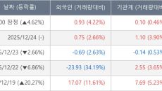[서울=뉴스핌] 로보뉴스 = 26일 10시 15분 현재 한솔아이원스(114810)는 외국인과 기관이 각각 2.86 만 주, 0- 1시간전