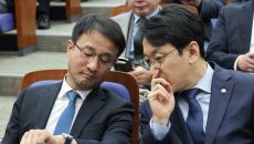 [서울=뉴스핌] 윤창빈 기자 = 정청래 더불어민주당 대표, 한병도 원내대표가 15일 서울 여의도 국회에서 열린 의원총회에서 악- 12시간전