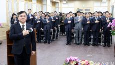 [서울=뉴스핌] 정일구 기자 = 박영재 신임 법원행정처장이 16일 오전 서울 서초구 대법원에서 열린 취임식에서 국민의례를 하고- 18시간전