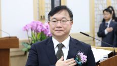 [서울=뉴스핌] 정일구 기자 = 박영재 신임 법원행정처장이 16일 오전 서울 서초구 대법원에서 열린 취임식에서 꽃다발을 받고- 18시간전