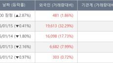[장중수급포착] 로지시스, 외국인 5일 연속 순매수행진... 주가 +2.16%